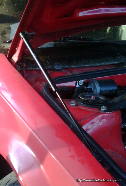 1. Pop front trunk and secure with stock prop rod (this is the last
