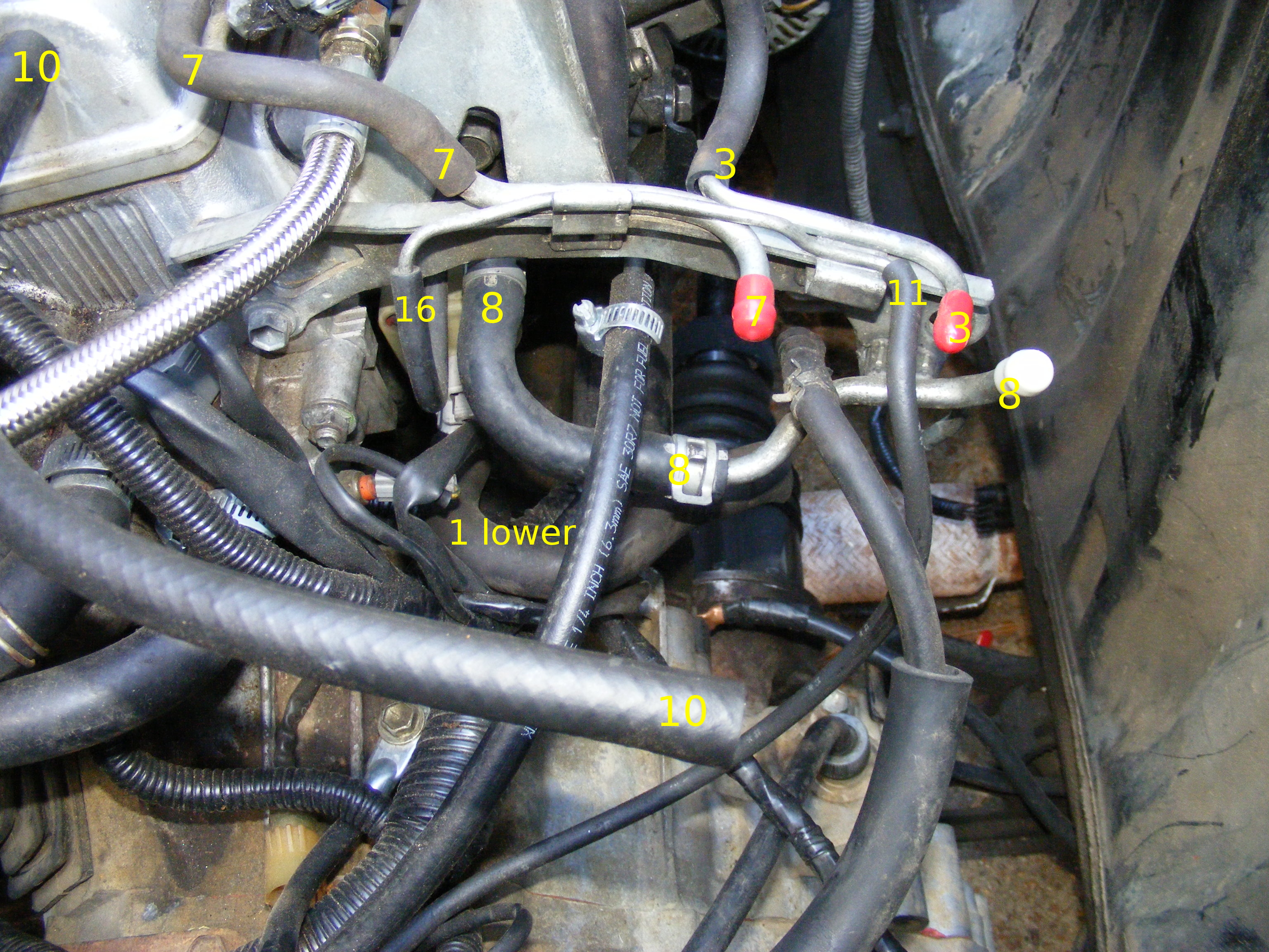 | 7 | Vac manifold side outlet to engine hook hardline. Capped |